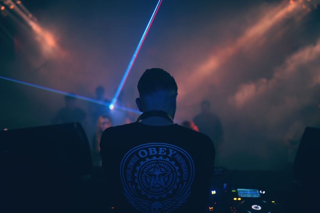 Die Laser hier waren relativ blass und farblich schwach, was dem Dunst in der Location geschuldet war, hier konnte ich mit Luminar dunkle Kontraste nutzen und das Licht mit einem LUT filtern durch eine Farbverschiebung konnte dann die Farbe wieder aus den Laserstrahlen geholt werden, diese wurden dann noch verstärkt um sie kräftiger erscheinen zu lassen.